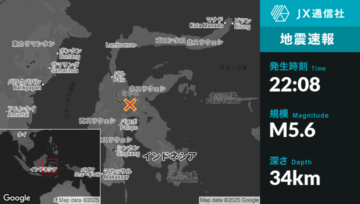 | 震源地 | インドネシアのPosoから南66kmの地点 |