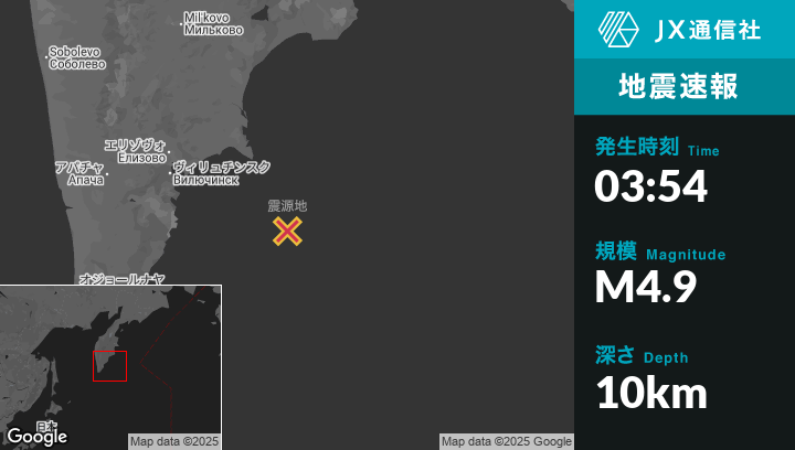| 震源地 | ロシアのPetropavlovsk-Kamchatskyから東南東165kmの地点 |