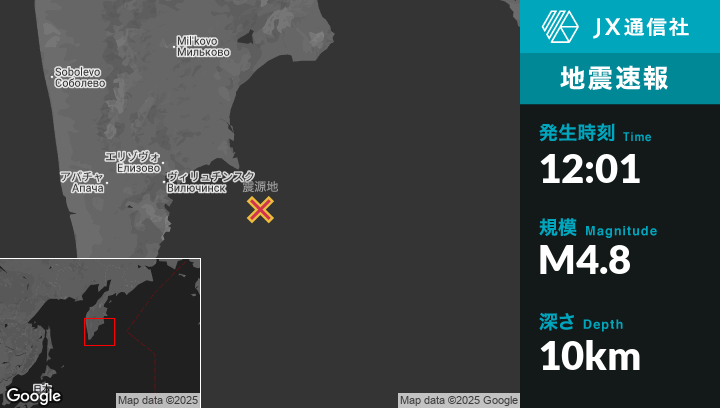 | 震源地 | ロシアのPetropavlovsk-Kamchatskyから東南東135kmの地点 |
