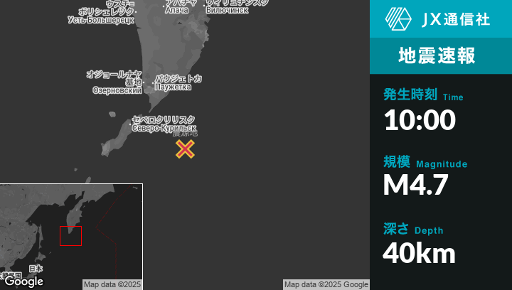| 震源地 | ロシアのSevero-Kuril’skから東南東127kmの地点 |