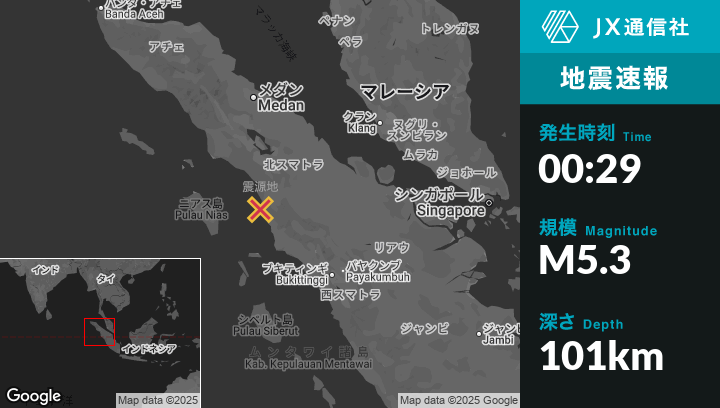 | 震源地 | インドネシアのPadangsidempuanから西南西53kmの地点 |