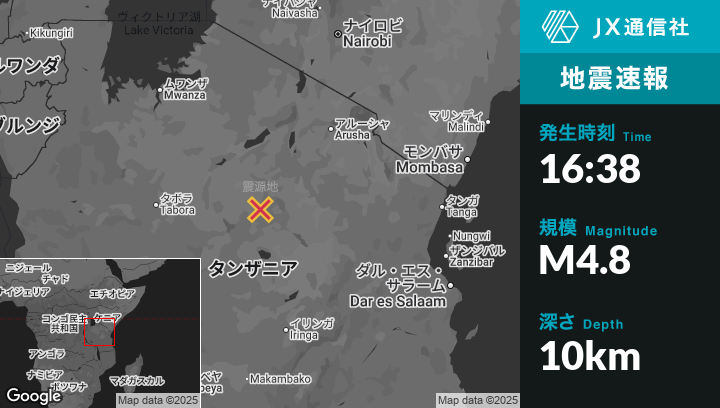 | 震源地 | タンザニアのMungaaから東南東26kmの地点 |