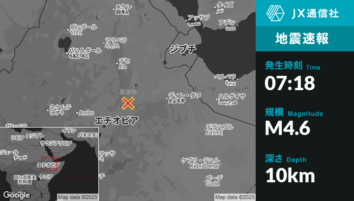 | 震源地 | エチオピアのDebre Sīnaから南東54kmの地点 |