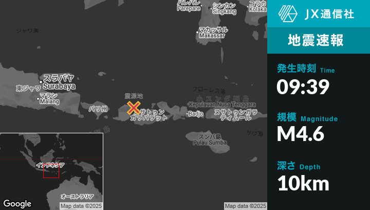 | 震源地 | インドネシアのLabuan Lombokから北北東29kmの地点 |