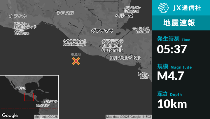 | 震源地 | グアテマラのChampericoから南南西88kmの地点 |