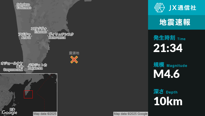 | 震源地 | ロシアのPetropavlovsk-Kamchatskyから南東179kmの地点 |