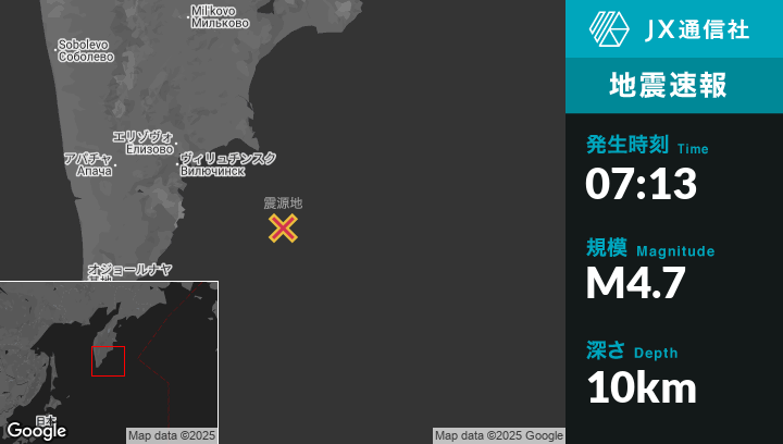 | 震源地 | ロシアのPetropavlovsk-Kamchatskyから南東158kmの地点 |