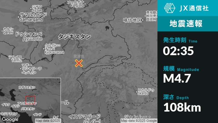 | 震源地 | タジキスタンのKhorughから南南西45kmの地点 |