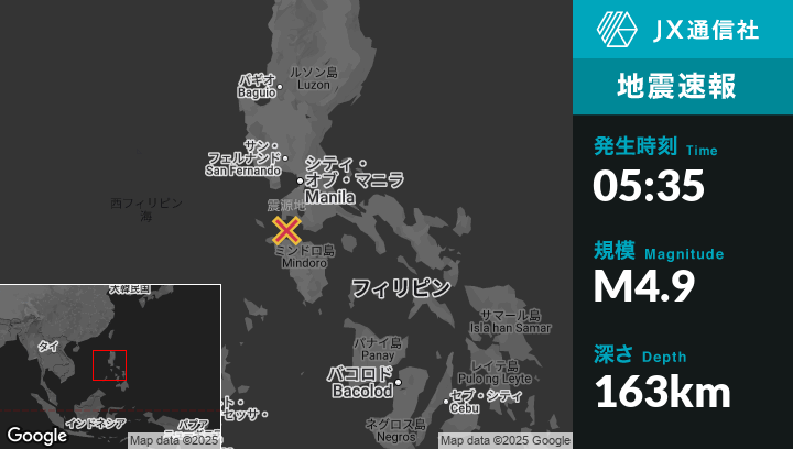 | 震源地 | フィリピンのHukayから南9kmの地点 |