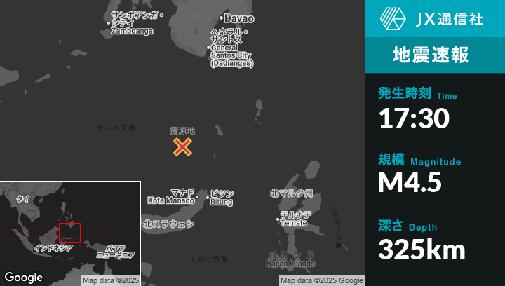 | 震源地 | インドネシアのManadoから北北西191kmの地点 |
