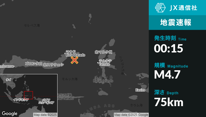 | 震源地 | インドネシアのBitungから南東61kmの地点 |