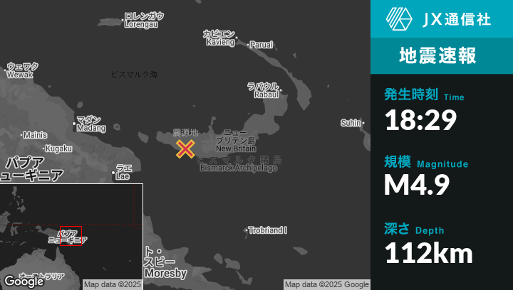 | 震源地 | パプアニューギニアのKandrianから北西50kmの地点 |