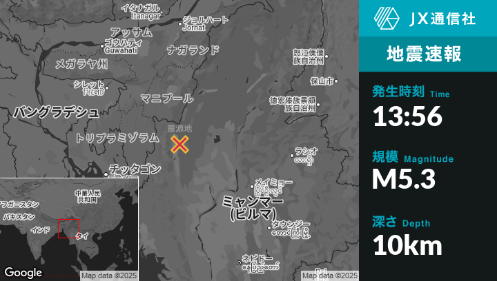 | 震源地 | ビルマ(ミャンマー)のMawlaikから南西36kmの地点 |