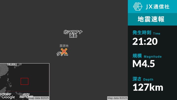 9月24日 21:20頃、グアムのYigo Villageから北28kmの地点でM4.5の地震がありました。