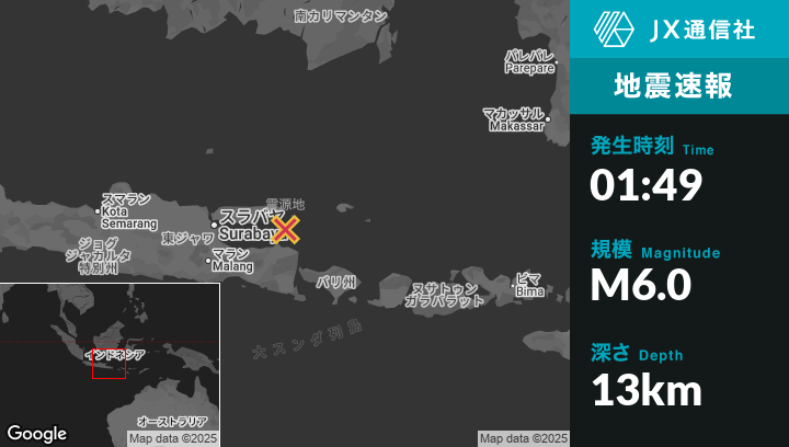 | 震源地 | インドネシアのKaliangetから南東32kmの地点 |