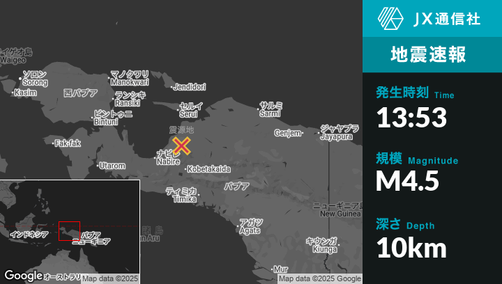 | 震源地 | インドネシアのNabireから東北東107kmの地点 |