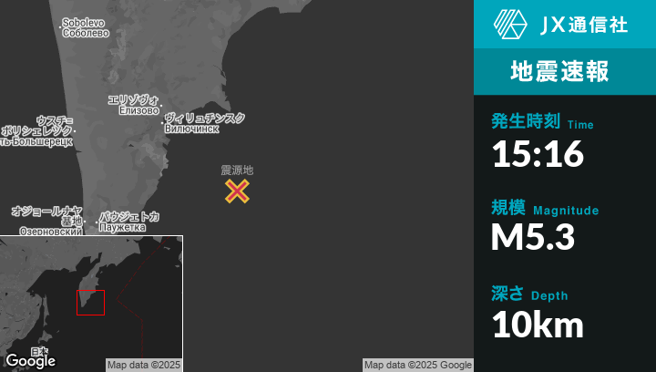 | 震源地 | ロシアのPetropavlovsk-Kamchatskyから南東158kmの地点 |