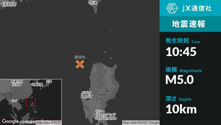 | 震源地 | フィリピンのDavilaから西97kmの地点 |