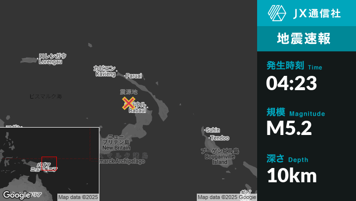 | 震源地 | パプアニューギニアのRabaulから西北西98kmの地点 |