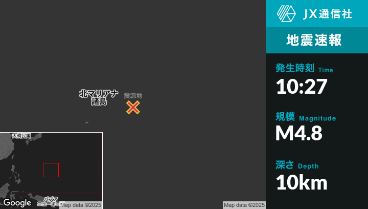 | 震源地 | 北マリアナ諸島のSaipanから東南東158kmの地点 |