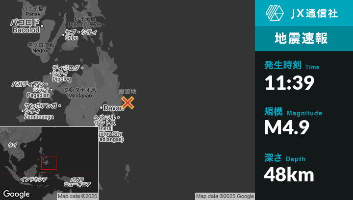 | 震源地 | フィリピンのBaculinから東22kmの地点 |
