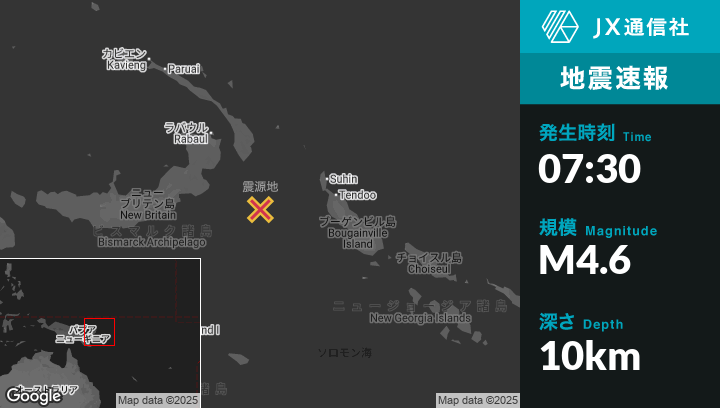 | 震源地 | パプアニューギニアのKokopoから南東188kmの地点 |