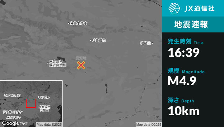 | 震源地 | 中国のTurpanから南南西143kmの地点 |