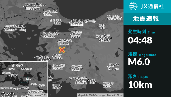 10月28日 04:48頃、トルコのSındırgıから南東8kmの地点でM6.0の地震がありました。