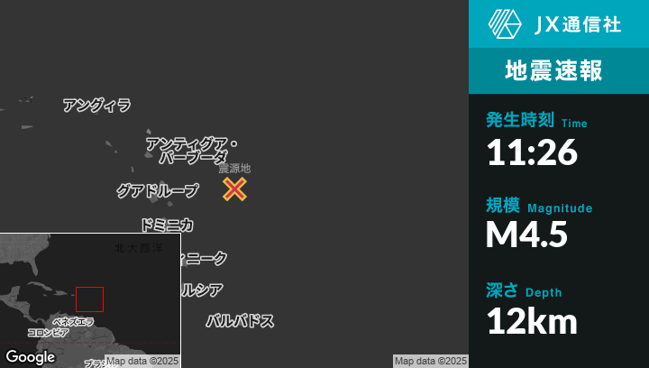 | 震源地 | グアドループのBeauséjourから東147kmの地点 |