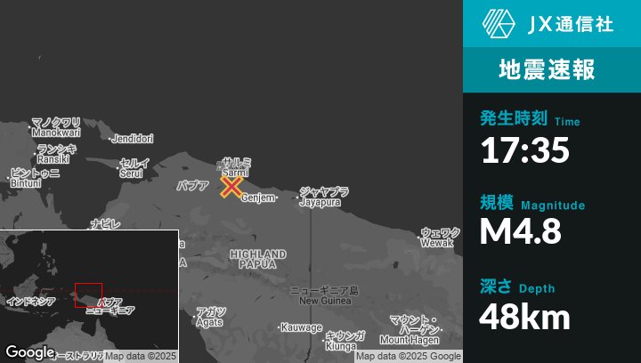 | 震源地 | インドネシアのAbepuraから西北西182kmの地点 |