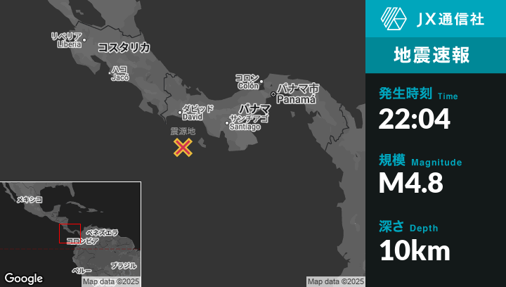 | 震源地 | パナマのBuricaから南東86kmの地点 |