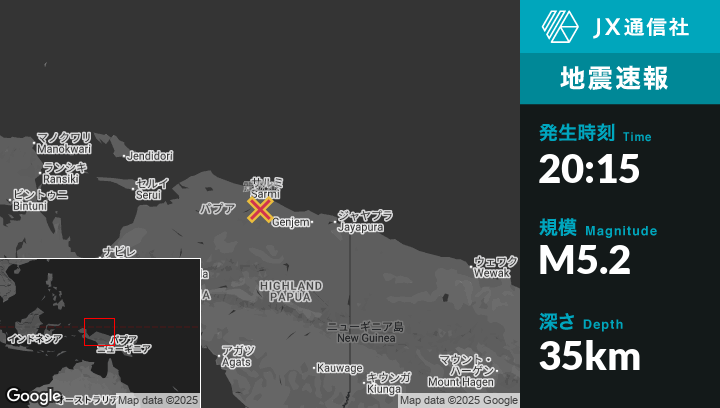 | 震源地 | インドネシアのAbepuraから西北西185kmの地点 |