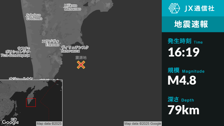| 震源地 | ロシアのPetropavlovsk-Kamchatskyから南東115kmの地点 |