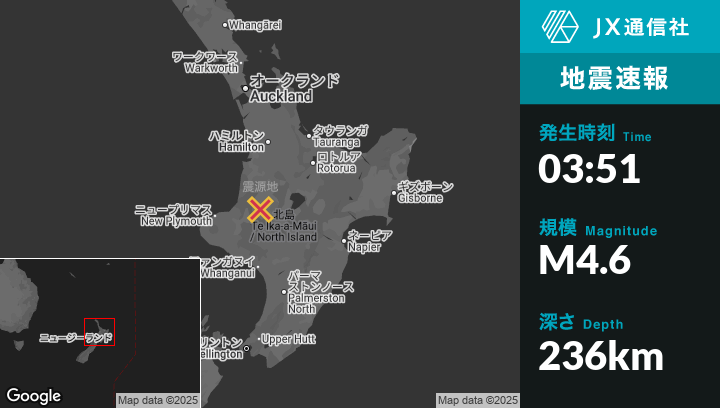 | 震源地 | ニュージーランドのTurangiから西北西65kmの地点 |
