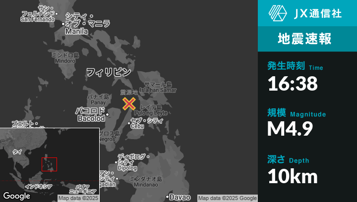 | 震源地 | フィリピンのHagdanから南南東7kmの地点 |