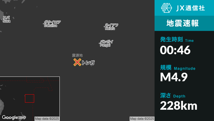 | 震源地 | トンガのHoumaから西北西73kmの地点 |