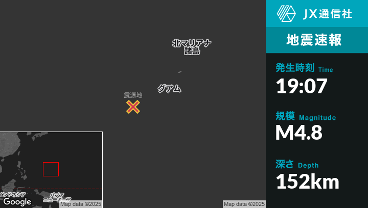 | 震源地 | グアムのMerizo Villageから西南西168kmの地点 |
