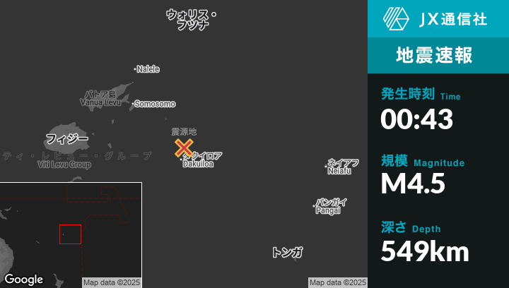 | 震源地 | フィジーのLevukaから東241kmの地点 |