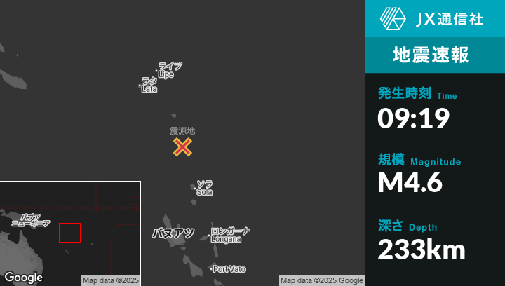 | 震源地 | バヌアツのSolaから北北西159kmの地点 |