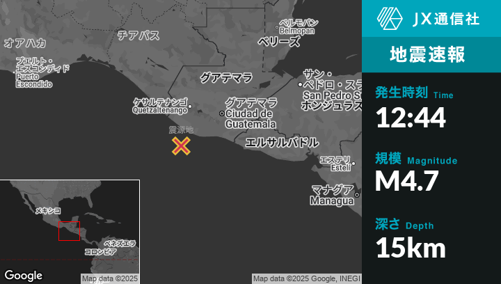 | 震源地 | グアテマラのChampericoから南南東60kmの地点 |