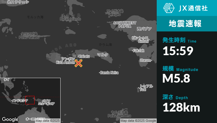 | 震源地 | インドネシアのAmbonから東20kmの地点 |