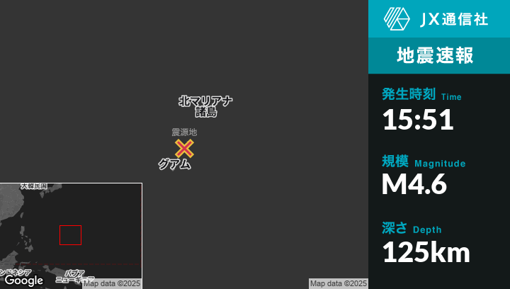 | 震源地 | グアムのYigo Villageから北北東60kmの地点 |