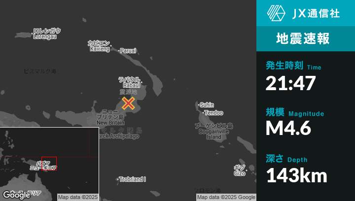 | 震源地 | パプアニューギニアのKokopoから南西107kmの地点 |