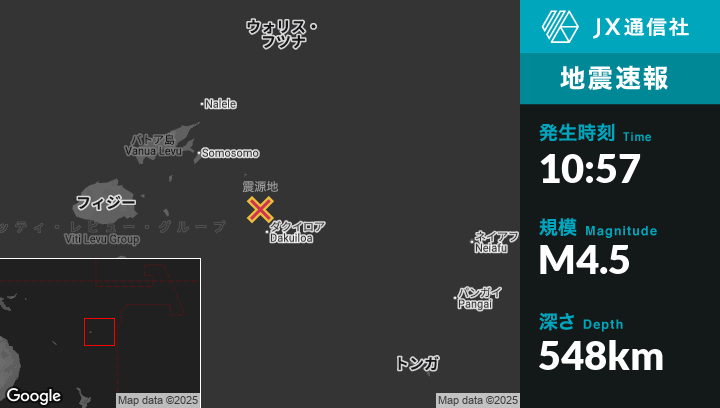 | 震源地 | フィジーのLevukaから東217kmの地点 |