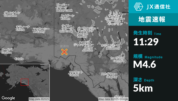 | 震源地 | アラスカのYakutatから北115kmの地点 |