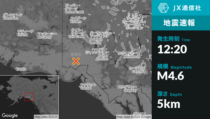 12月07日 12:20頃、アラスカのYakutatから北113kmの地点でM4.6の地震がありました。