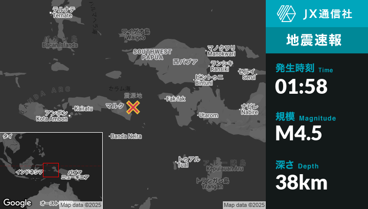 | 震源地 | インドネシアのFakfakから西157kmの地点 |