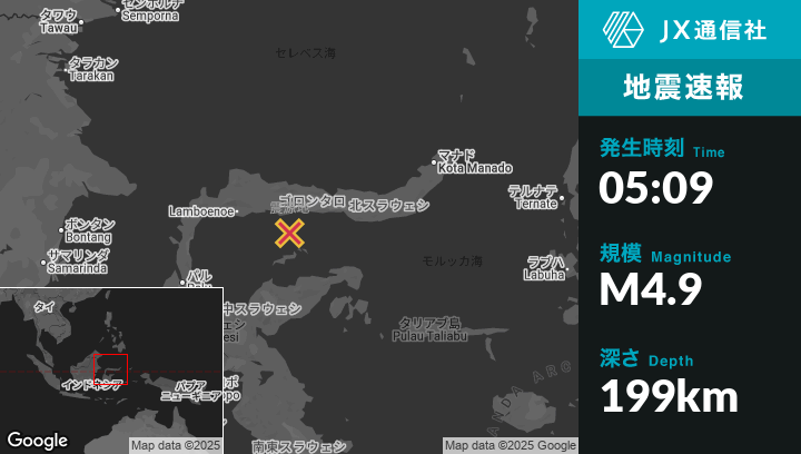 | 震源地 | インドネシアのGorontaloから西南西123kmの地点 |