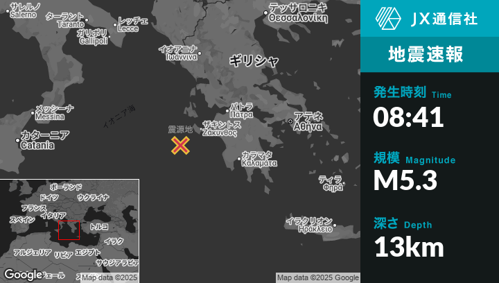 | 震源地 | ギリシャのLithakiáから西南西59kmの地点 |