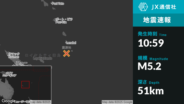 | 震源地 | バヌアツのIsangelから南81kmの地点 |